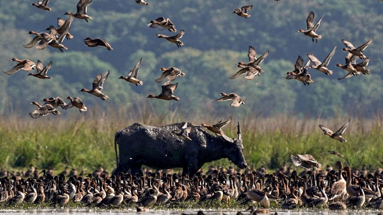 কাজিৰঙাত বনৰীয়া ম’হৰ সৈতে এজাক পখী