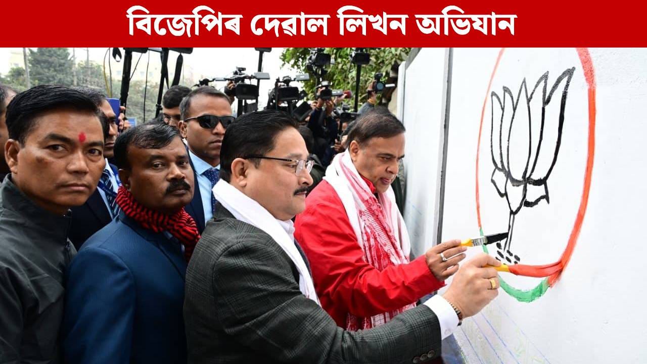 ২০২৬ৰ নিৰ্বাচনৰ বাবে তৎপৰ হৈ পৰিছে শাসকীয় বিজেপি। ৰাজ্যজুৰি আৰম্ভ বিজেপিৰ প্ৰচাৰ অভিযান ।দেৱাল লিখনেৰে প্ৰচাৰ অভিযান আৰম্ভ গেৰুৱা দলটোৰ। আজি খানাপাৰাত মুখ্যমন্ত্ৰী ড০ হিমন্ত বিশ্ব শৰ্মা, ৰাজ্যিক সভাপতি দিলীপ শইকীয়াই আনুষ্ঠানিকভাৱে শুভাৰম্ভ কৰে দেৱাল লিখন অভিযান। সপ্ত শ্ল’গানেৰে চলাব প্ৰচাৰ। তৃতীয়বাৰৰ বাবে কিয় বিজেপি চৰকাৰ লাগে ইয়াৰ বাবে বিশেষ যুক্তি দাঙি ধৰি বিজেপিয়ে প্ৰস্তুত কৰিছে শ্ল’গান।