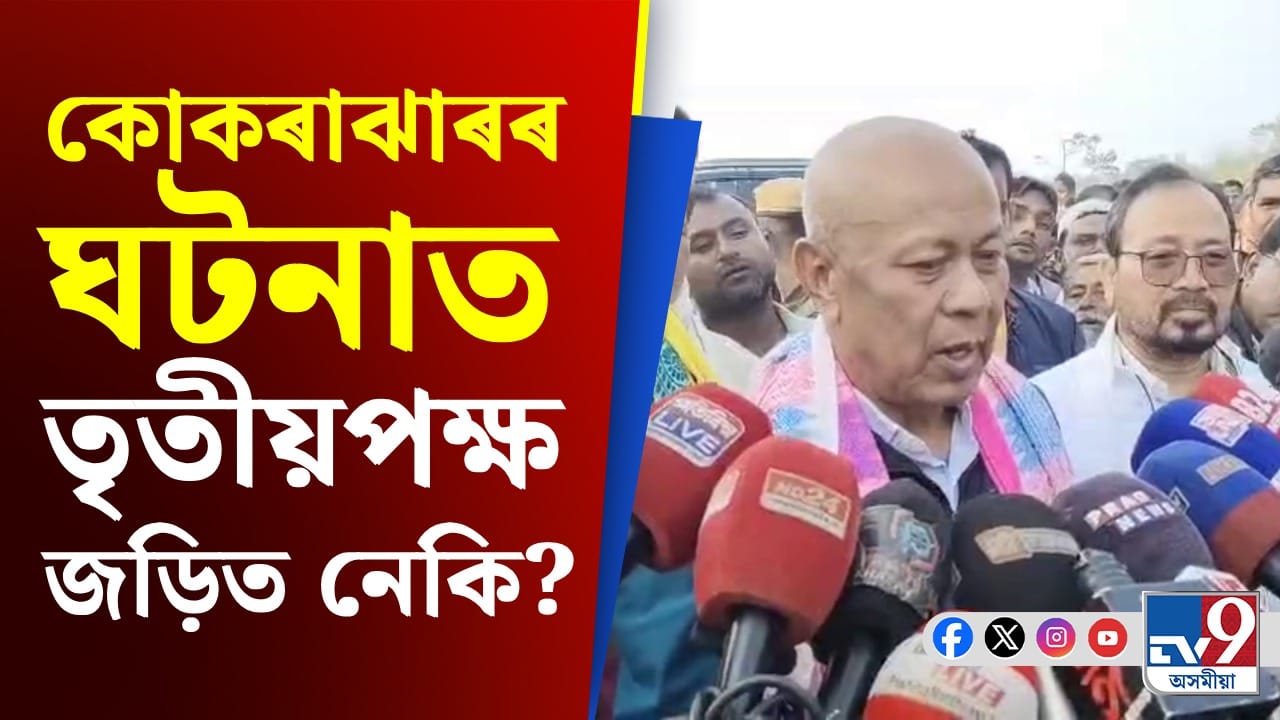 কোকৰাঝাৰৰ ঘটনাক লৈ বিটিচি প্ৰধান হাগ্ৰামা মহিলাৰীৰ প্ৰতিক্ৰিয়া। কোকৰাঝাৰৰ অনাকাংক্ষিত ঘটনাক লৈ সংবাদ মাধ্যমৰ আগত প্ৰতিক্ৰিয়া প্ৰকাশ কৰে বিটিচিৰ মুখ্য কাৰ্যবাহী হাগ্ৰামা মহিলাৰীয়ে৷ তেওঁ কয় যে, “কোকৰাঝাৰৰ ঘটনা আমাৰ বাবে অতি দুৰ্ভাগ্যজনক৷ ইয়াত ভুল বুজাবুজিৰ সৃষ্টি হৈছে৷ ইয়াত তৃতীয় শক্তি জড়িত আছে৷ কোনো তৃতীয় শক্তি ইয়াত সোমাই ৰাজনৈতিকভাৱে অশান্তি সৃষ্টি কৰিব বিচাৰিছে ৷ এইটো আমি হ’বলৈ নিদিও ৷” সকলোকে শান্তি বজাই ৰখাৰ আহ্বান হাগ্ৰামা মহিলাৰীৰ৷
