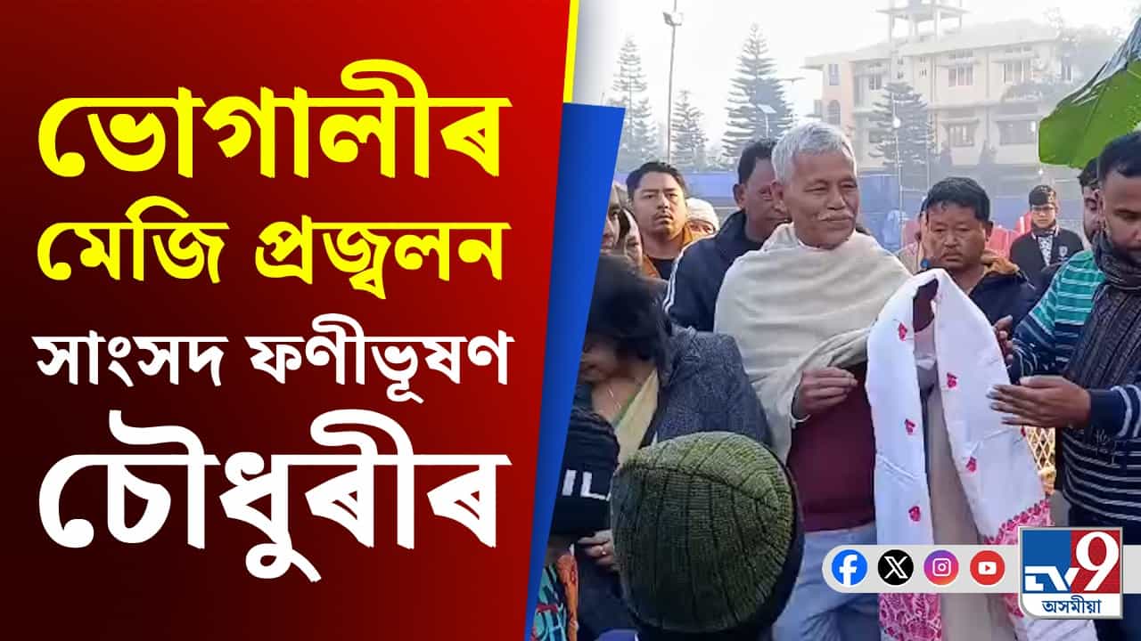 আজি হেঁপাহৰ মাঘ বিহু, বৰপাৰা খেলপথাৰত মেজি প্ৰজ্বলন সাংসদ ফণীভূষণ চৌধুৰীৰ
