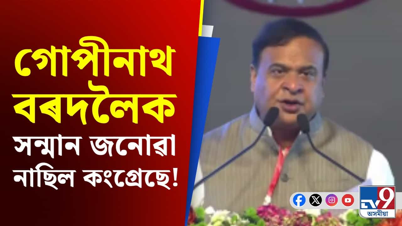 কংগ্ৰেছক তীব্ৰ সমালোচনা মুখ্যমন্ত্ৰী হিমন্ত বিশ্ব শৰ্মাৰ। তেওঁ কয় যে, আজি যিধৰণে প্ৰধানমন্ত্ৰী নৰেন্দ্ৰ মোদীয়ে গোপীনাথ বৰদলৈক সন্মান জনাইছে, আগতে কেতিয়া কোনো প্ৰধানমন্ত্ৰীয়ে এইদৰে সন্মান জনোৱা নাছিল।
